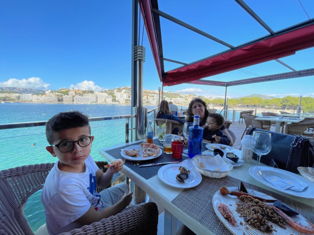 Nous sommes partis le matin pour se rendre a la Cala comtesa une crique qui se situe à une vingtaine de minute de Palma mais la conductrice du taxi qui était très gentille nous a conseillé avec les enfants de se rendre à celle de l’autre côté car il n’y avait que des galets sur celle que nous avions repéré.