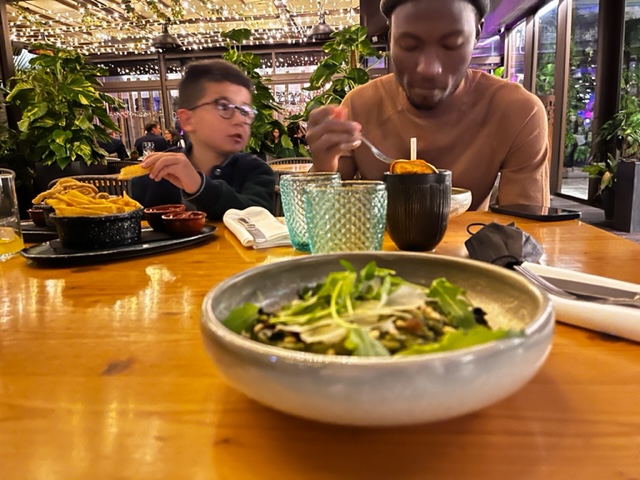 Nous avons ensuite déjeunés dans un restaurant situé dans une petite rue l’accueil était parfait. Il y avait un musicien qui jouait de la guitare et chantait à l’intérieur. 100% kids friendly .