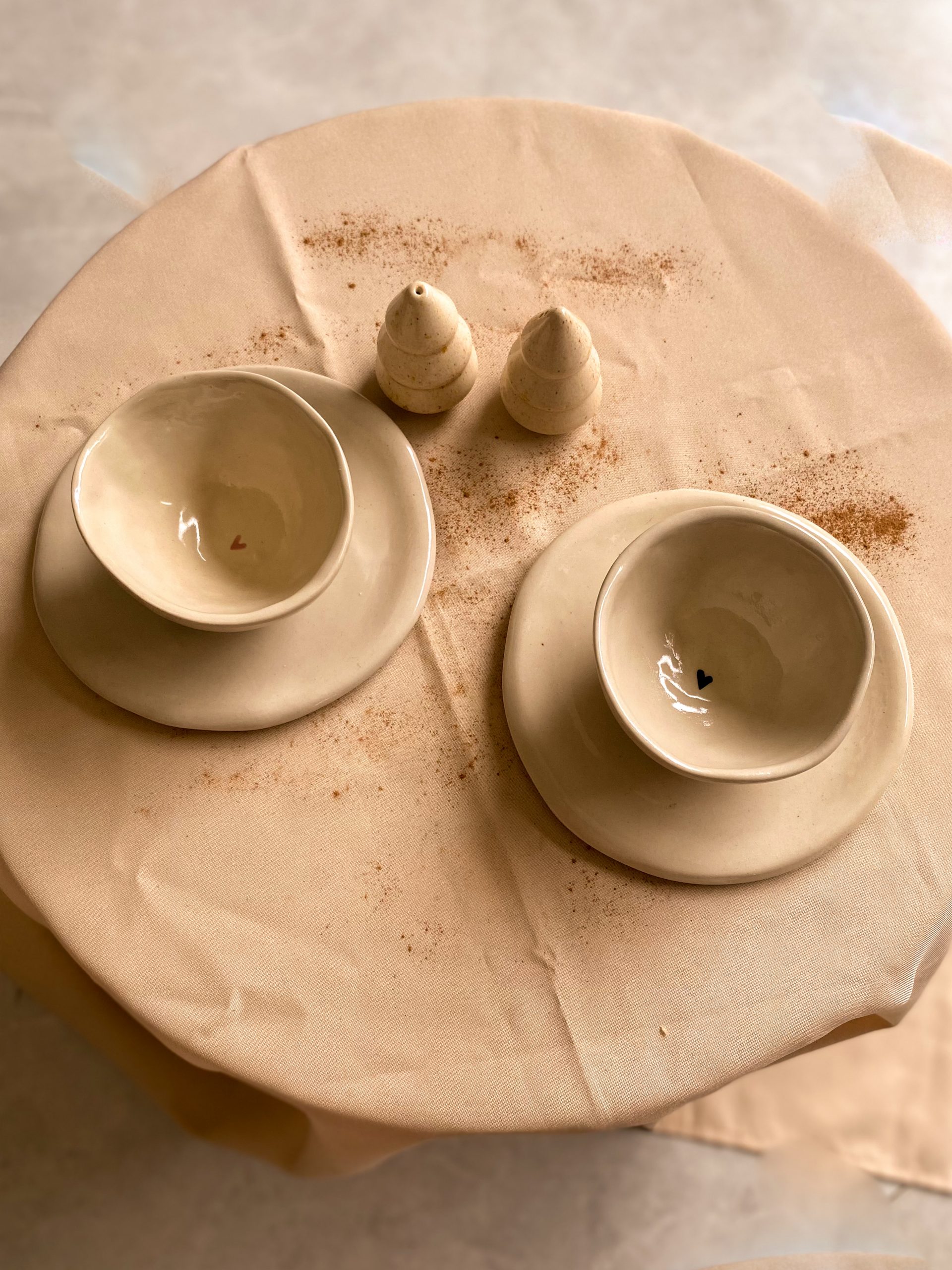 – 2 assiettes à dessert (couleur du coeur disponible : rose, beige, jaune orangé et noir)