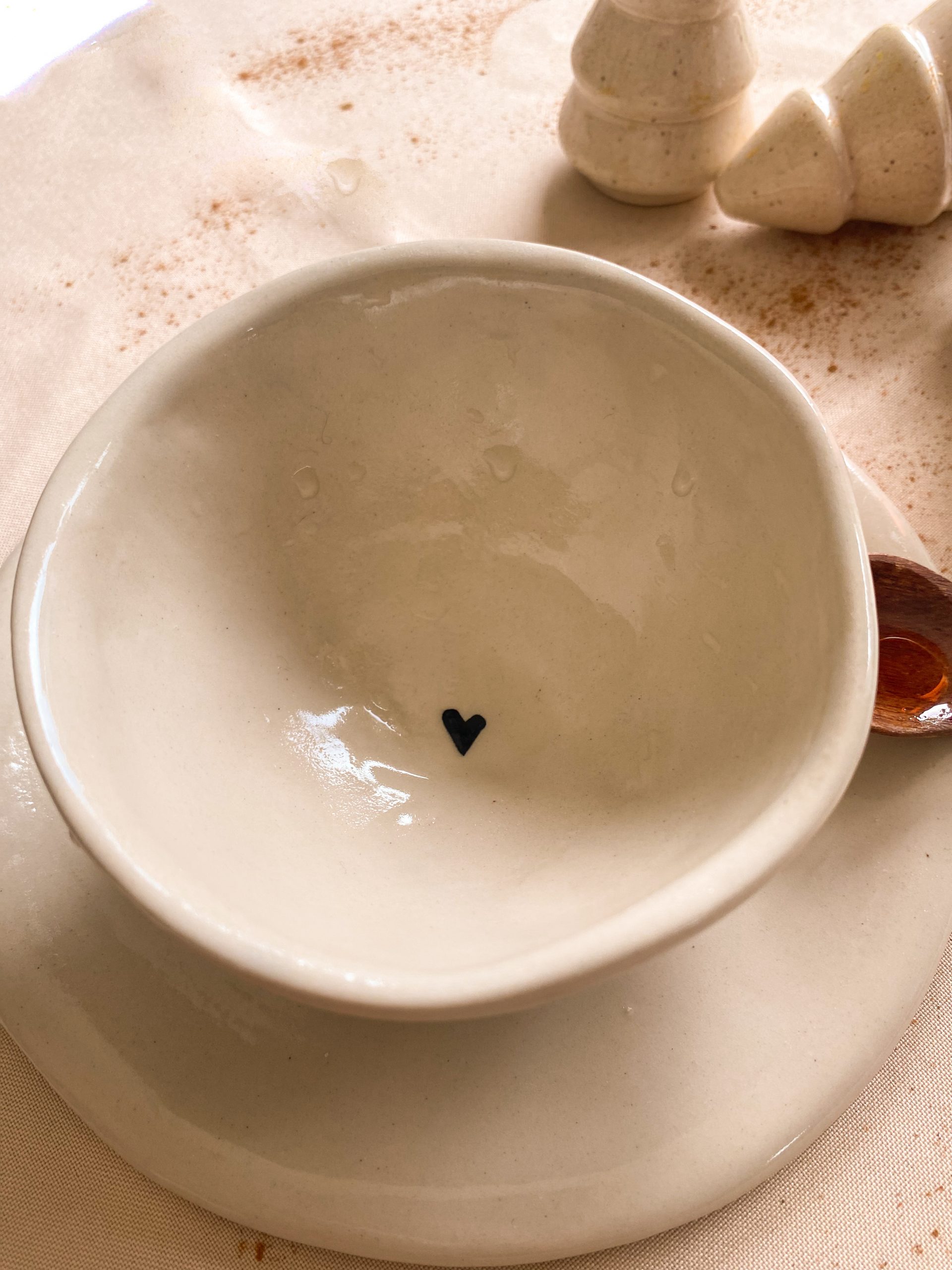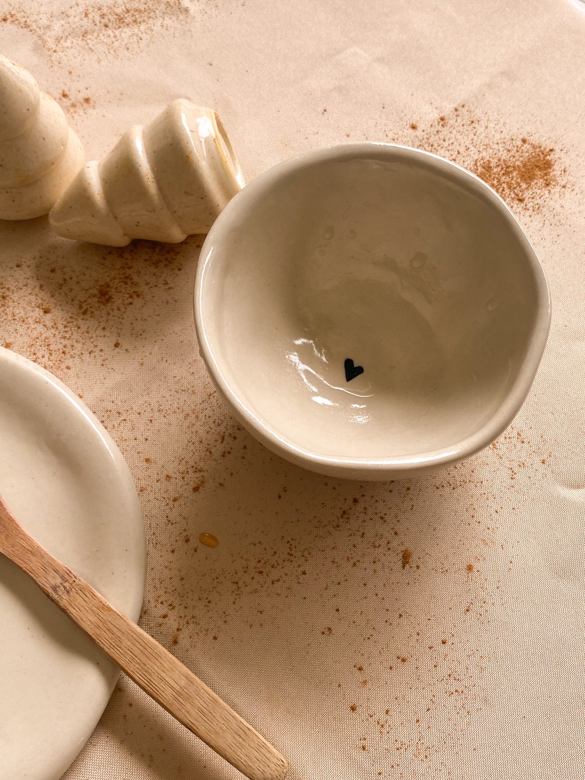 – 1 bol (couleur du coeur disponible en jaune orangé, beige, noir ou rose)